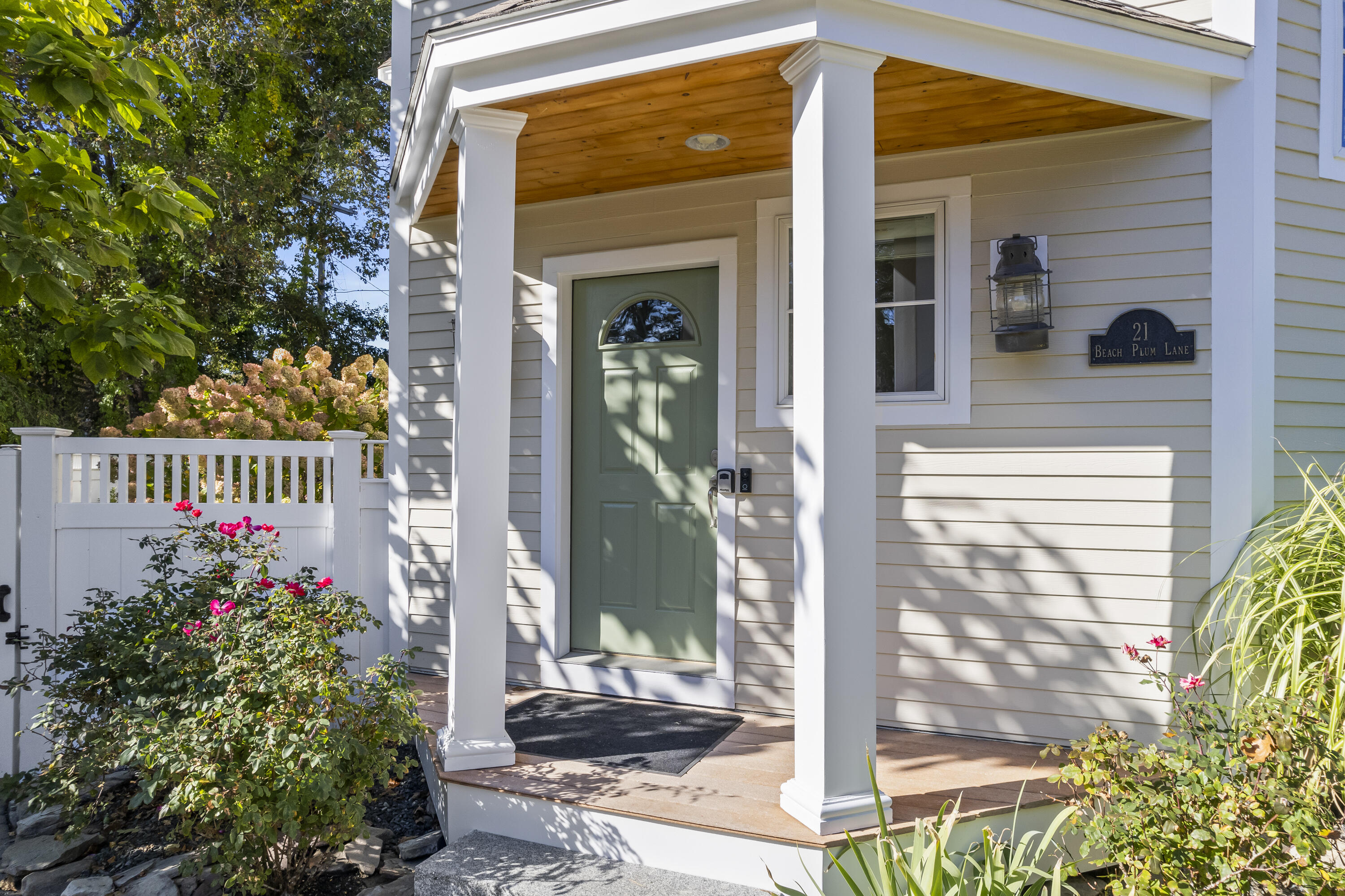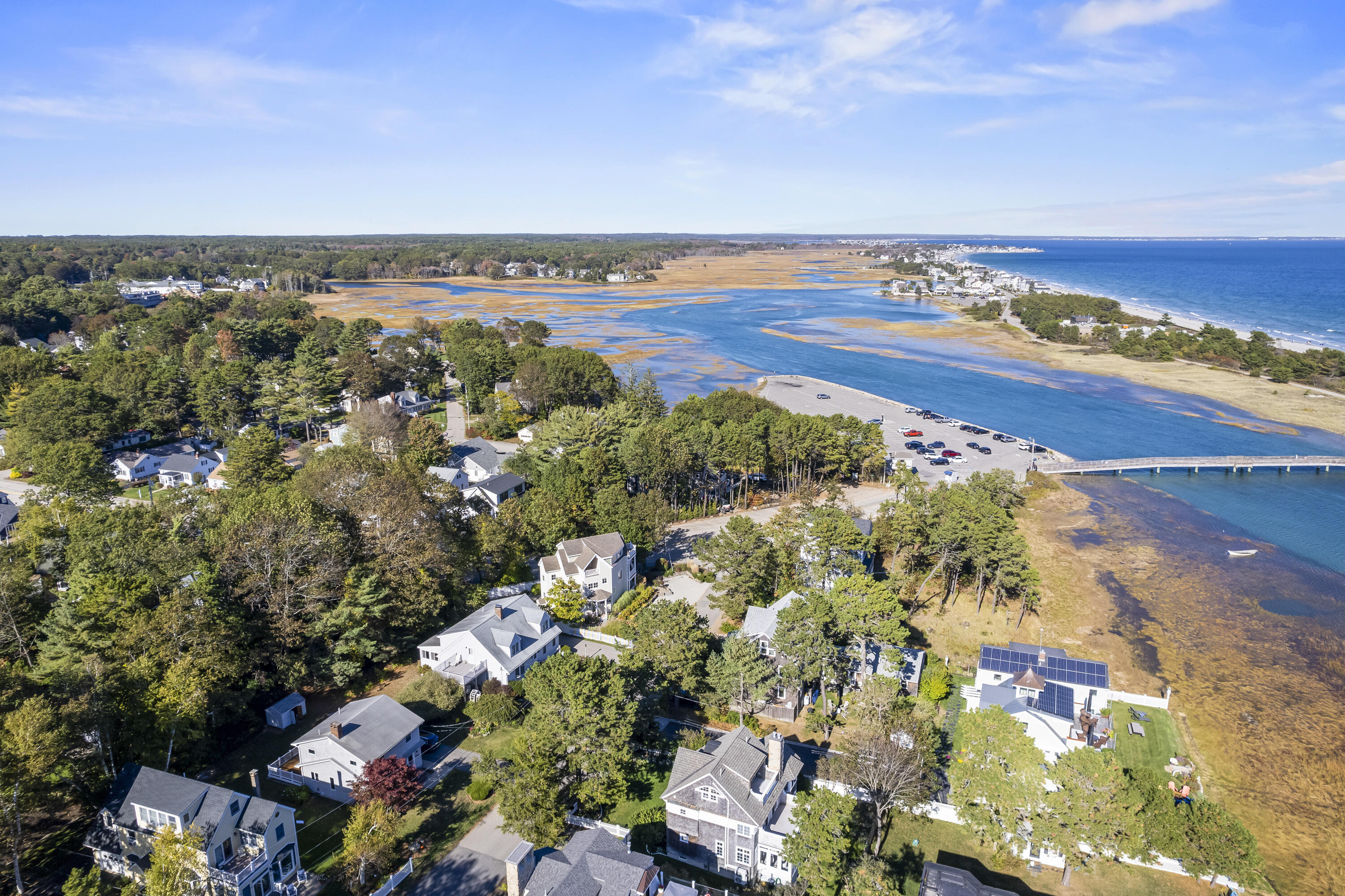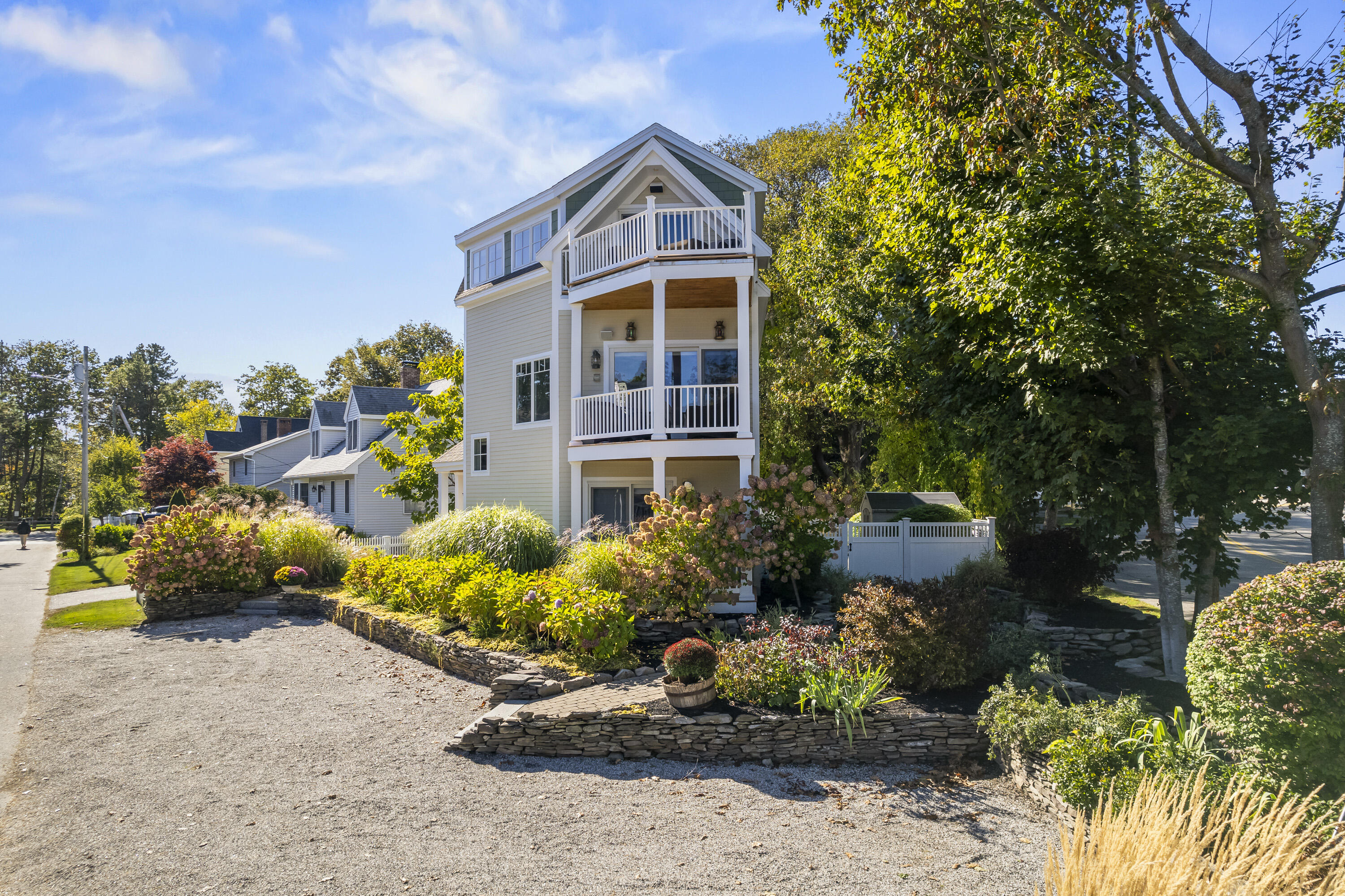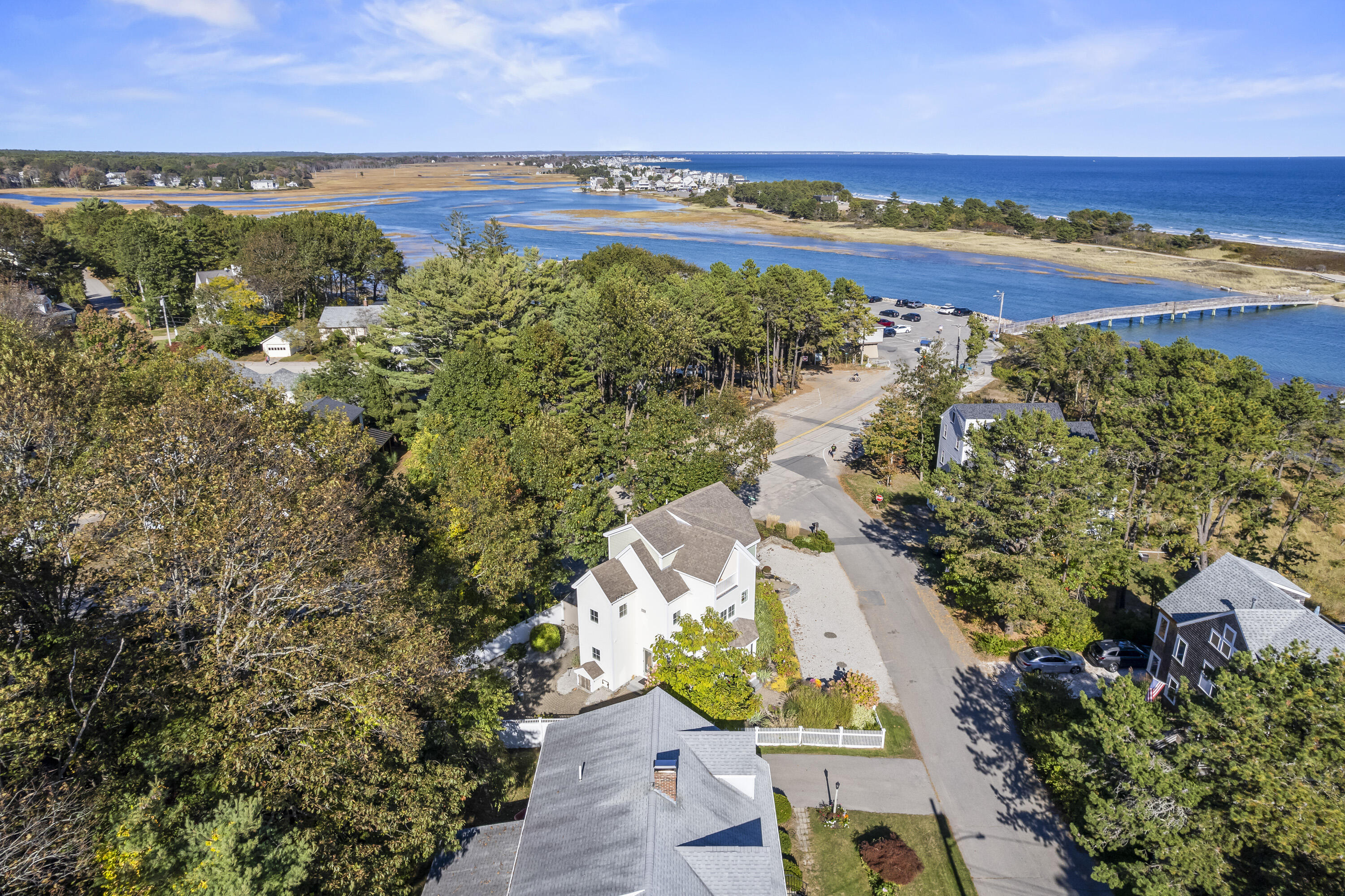 Imagine listening to the sounds of the crashing waves on Ogunquit's renowned Footbridge Beach from one of the four covered decks that 21 Beach Plum Lane has to offer. Steps away, you can enjoy kayaking or paddling up and down the Ogunquit River or cross the bridge and spend your days relaxing beachside. This 1,851 square foot, 3 bedroom, 2 and a half bathroom, contemporary modern home has a reverse floor plan so the main living space can soak up all the views. The entryway welcomes you with a detailed compass rose leading you to two bedrooms, a full bath, front deck, and walk-out access to the secluded, meticulously manicured gardens, inviting patio, and outdoor entertaining space. The second level boasts sprawling hardwood floors and an open concept living space with oversized windows that capture breathtaking sunrises. It features a well-equipped chef's kitchen, dining area, cozy gas fireplace, half bath with laundry, and a second front deck. Ascending up to the private suite located on the third level offers a large suite with extra space for a potential quiet seating area, an ensuite with radiant flooring and an oversized walk-in tile shower, and two private ocean-facing decks. Don't miss out on this unique opportunity. **SHOWINGS START SATURDAY @ THE OPEN HOUSE, 10/18**