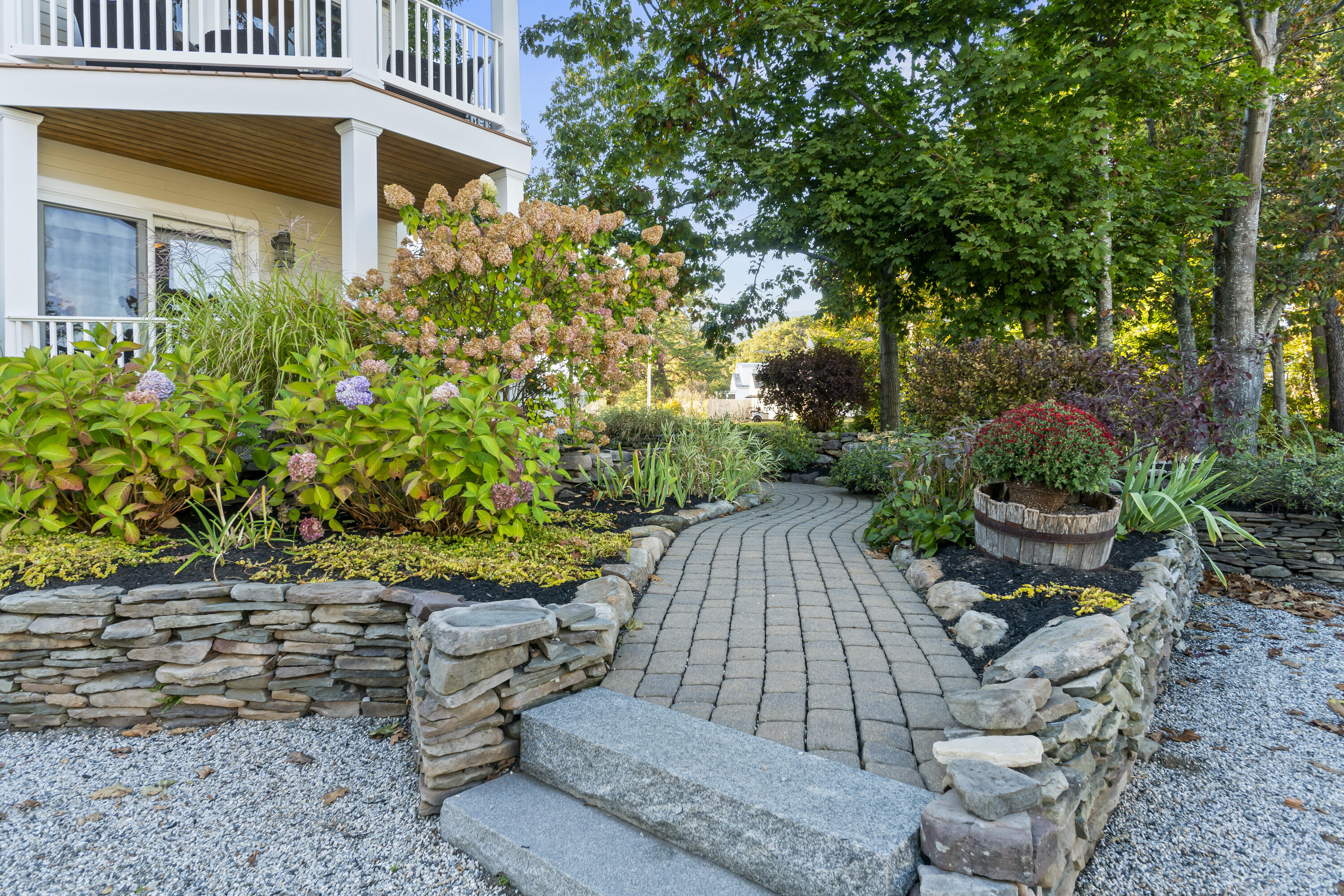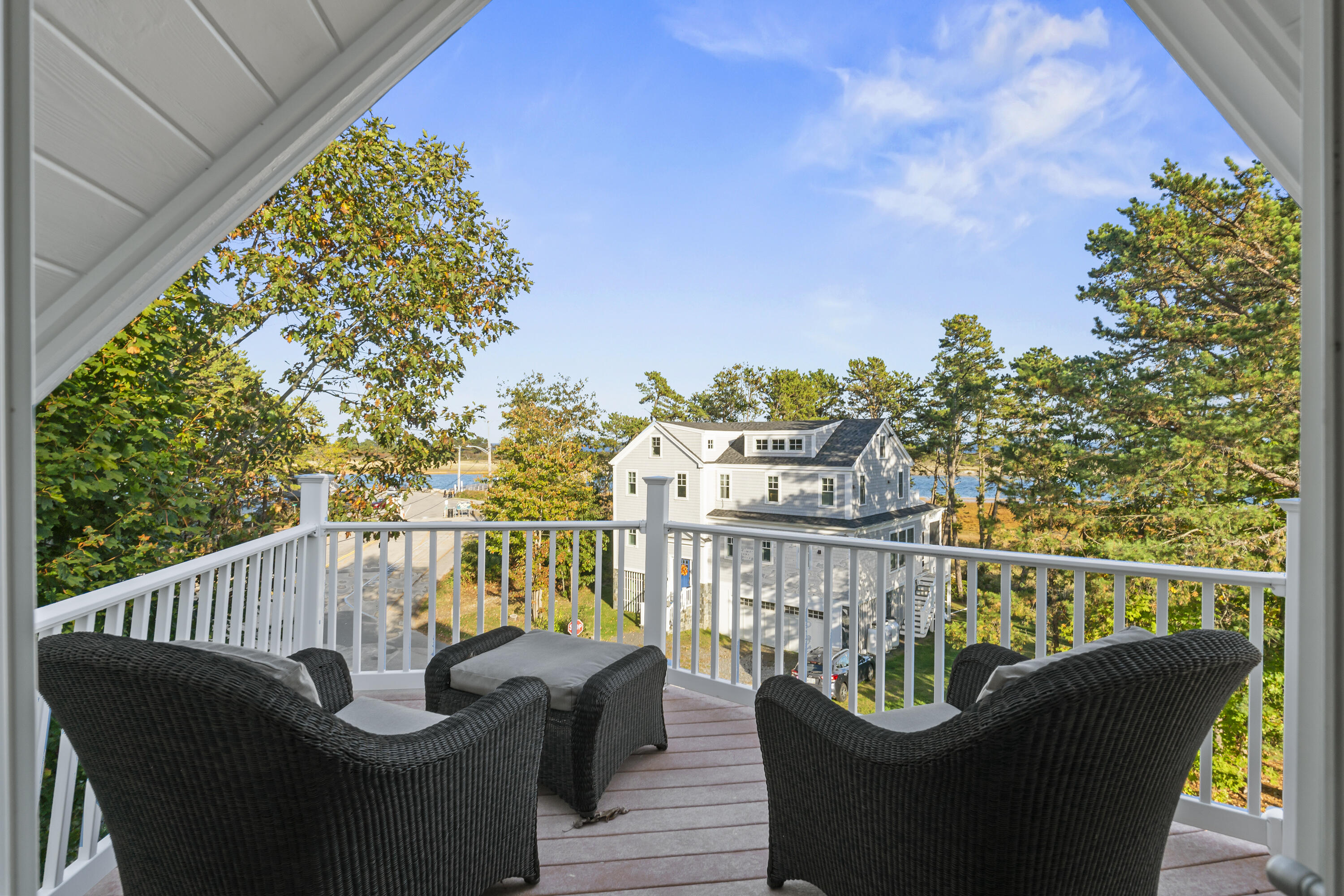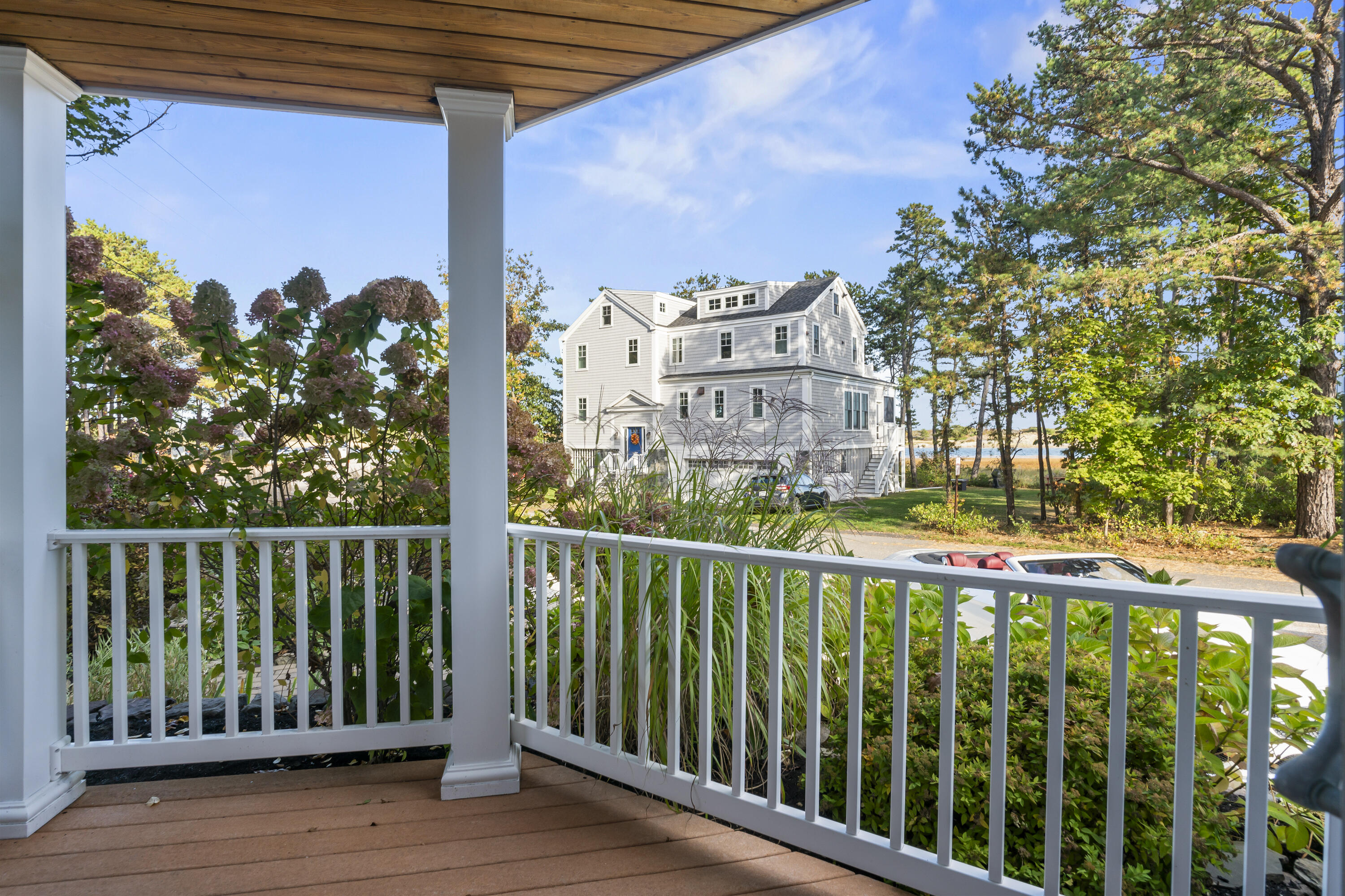 Imagine listening to the sounds of the crashing waves on Ogunquit's renowned Footbridge Beach from one of the four covered decks that 21 Beach Plum Lane has to offer. Steps away, you can enjoy kayaking or paddling up and down the Ogunquit River or cross the bridge and spend your days relaxing beachside. This 1,851 square foot, 3 bedroom, 2 and a half bathroom, contemporary modern home has a reverse floor plan so the main living space can soak up all the views. The entryway welcomes you with a detailed compass rose leading you to two bedrooms, a full bath, front deck, and walk-out access to the secluded, meticulously manicured gardens, inviting patio, and outdoor entertaining space. The second level boasts sprawling hardwood floors and an open concept living space with oversized windows that capture breathtaking sunrises. It features a well-equipped chef's kitchen, dining area, cozy gas fireplace, half bath with laundry, and a second front deck. Ascending up to the private suite located on the third level offers a large suite with extra space for a potential quiet seating area, an ensuite with radiant flooring and an oversized walk-in tile shower, and two private ocean-facing decks. Don't miss out on this unique opportunity. **SHOWINGS START SATURDAY @ THE OPEN HOUSE, 10/18**
