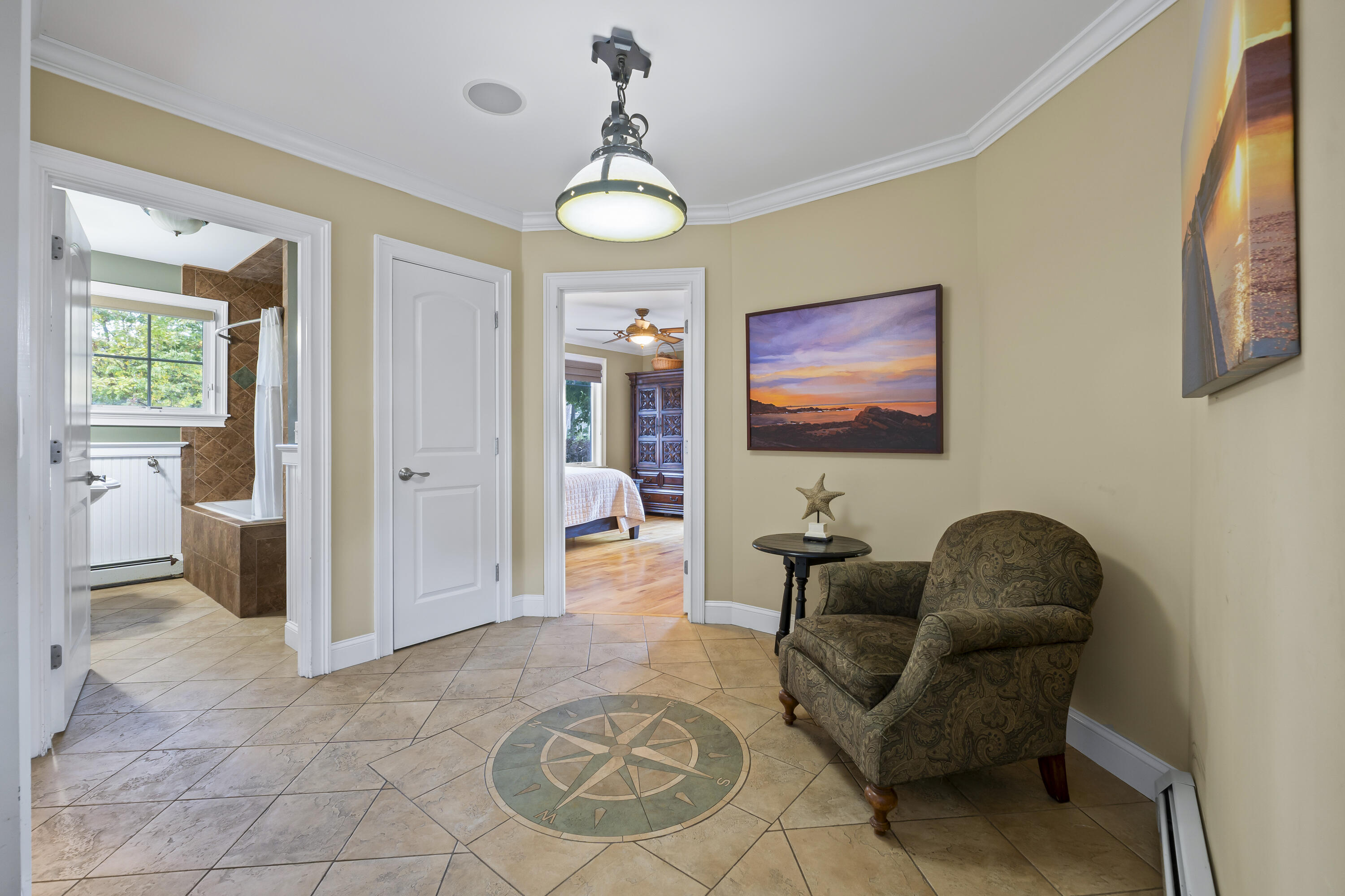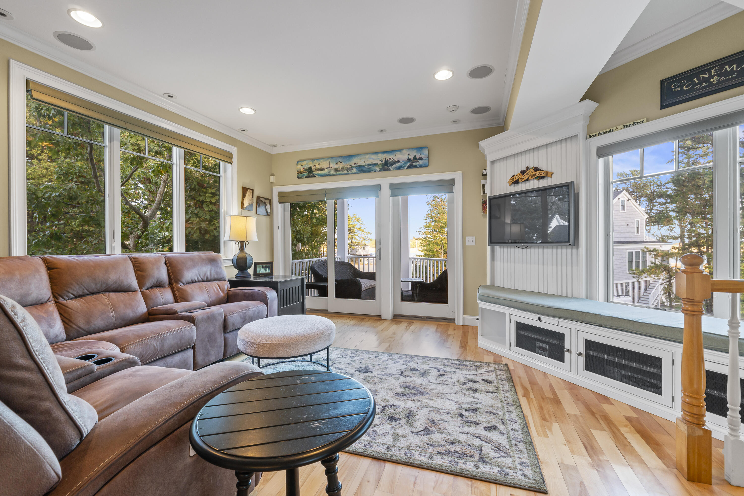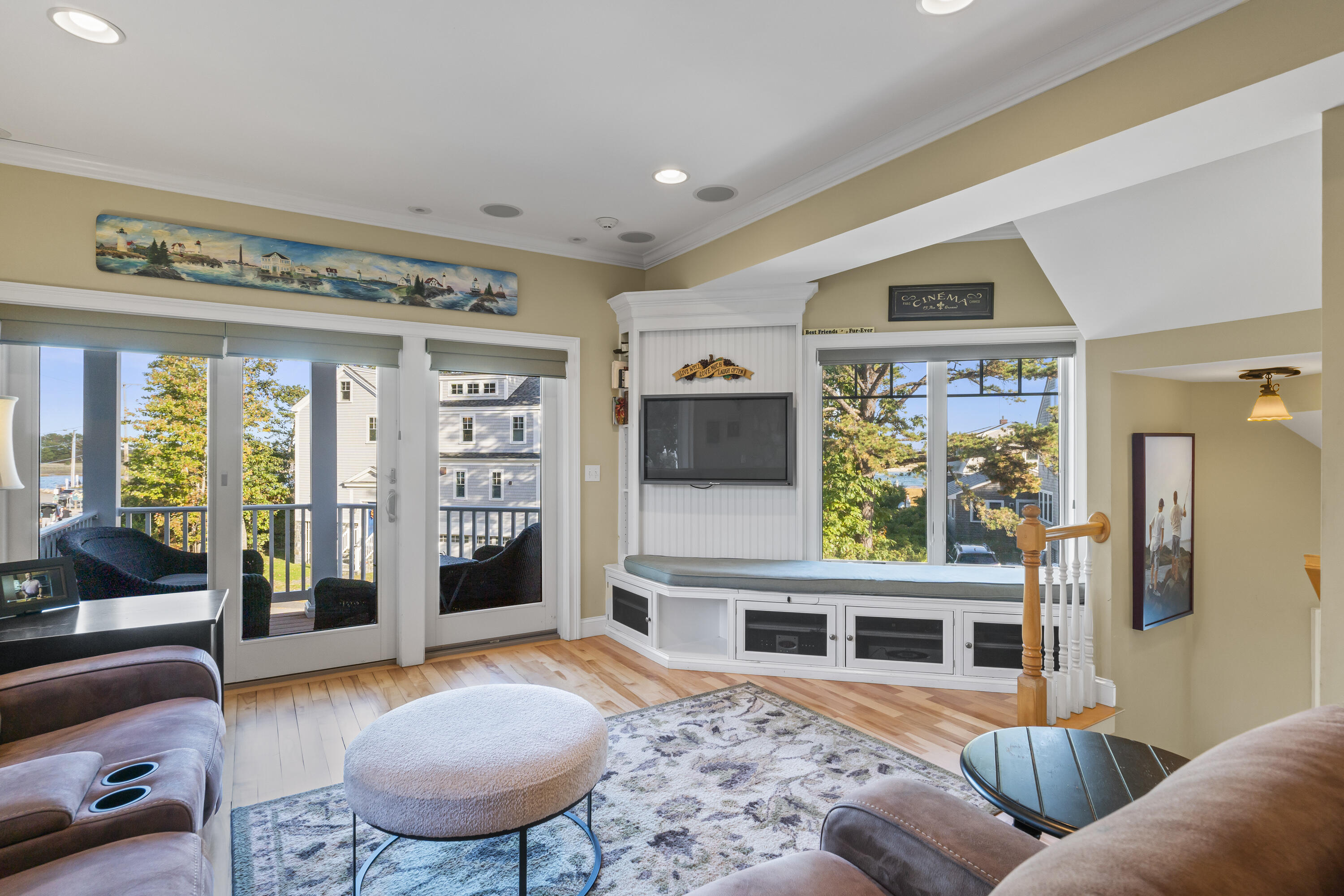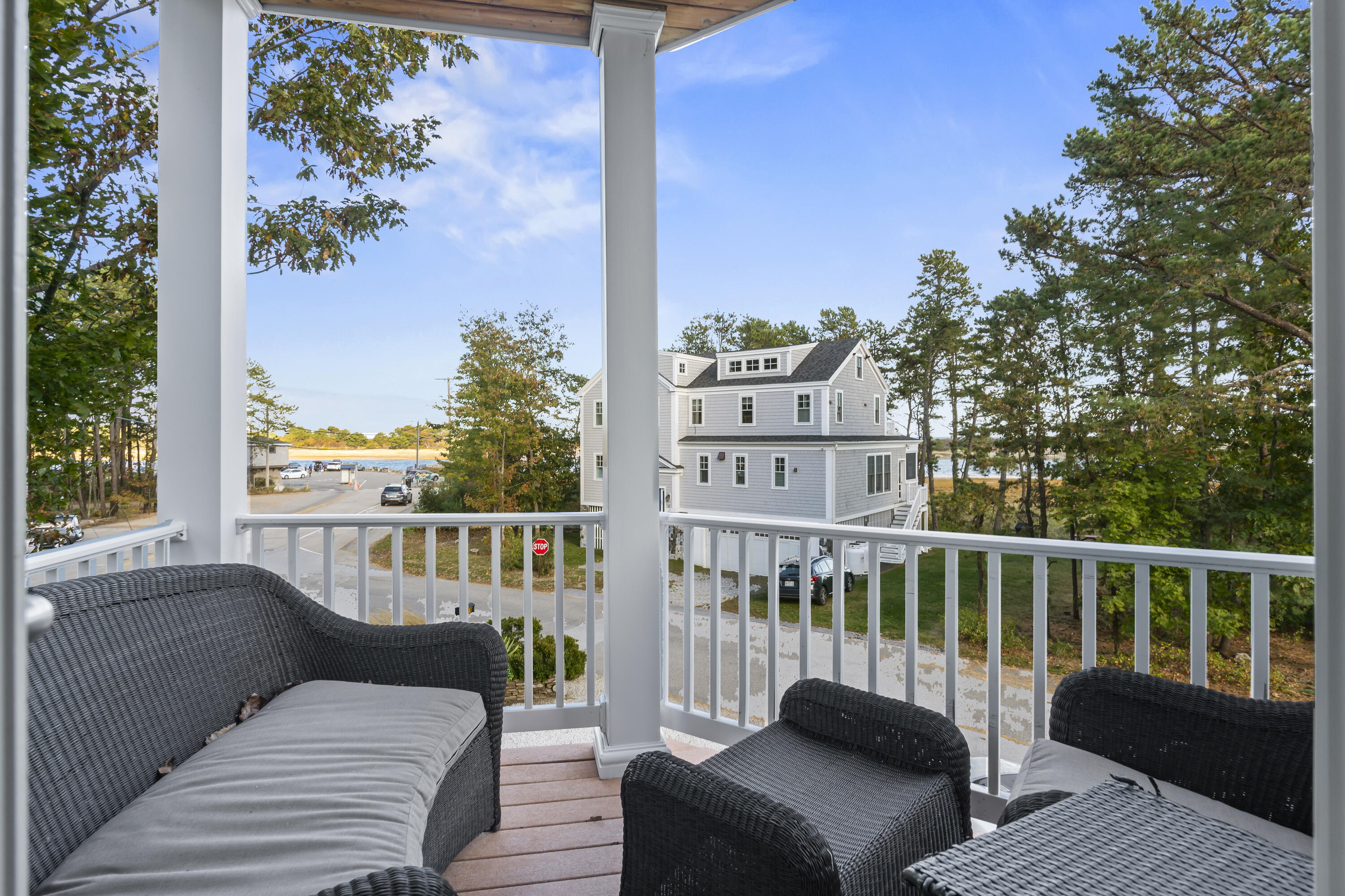 Imagine listening to the sounds of the crashing waves on Ogunquit's renowned Footbridge Beach from one of the four covered decks that 21 Beach Plum Lane has to offer. Steps away, you can enjoy kayaking or paddling up and down the Ogunquit River or cross the bridge and spend your days relaxing beachside. This 1,851 square foot, 3 bedroom, 2 and a half bathroom, contemporary modern home has a reverse floor plan so the main living space can soak up all the views. The entryway welcomes you with a detailed compass rose leading you to two bedrooms, a full bath, front deck, and walk-out access to the secluded, meticulously manicured gardens, inviting patio, and outdoor entertaining space. The second level boasts sprawling hardwood floors and an open concept living space with oversized windows that capture breathtaking sunrises. It features a well-equipped chef's kitchen, dining area, cozy gas fireplace, half bath with laundry, and a second front deck. Ascending up to the private suite located on the third level offers a large suite with extra space for a potential quiet seating area, an ensuite with radiant flooring and an oversized walk-in tile shower, and two private ocean-facing decks. Don't miss out on this unique opportunity. **SHOWINGS START SATURDAY @ THE OPEN HOUSE, 10/18**