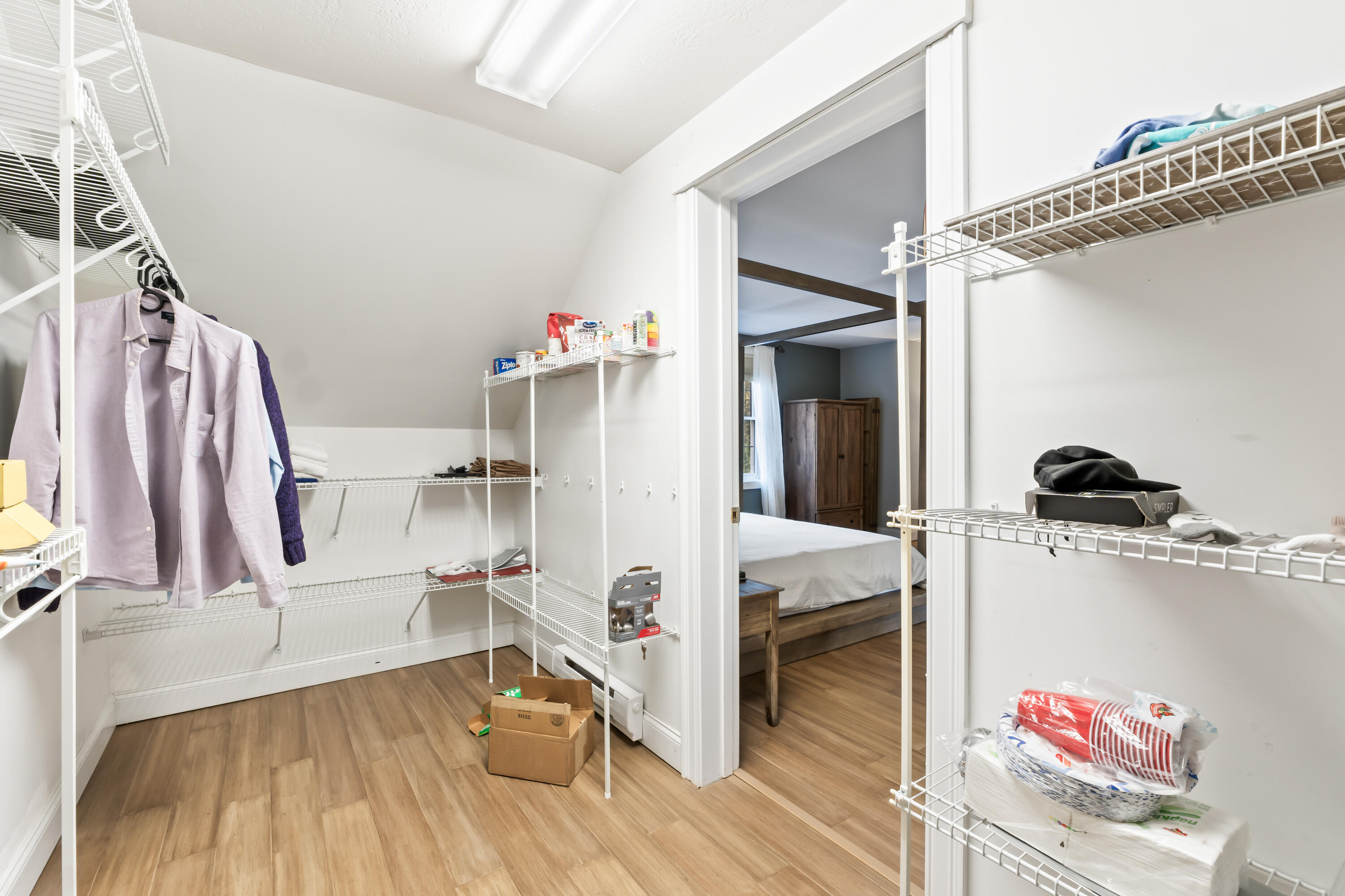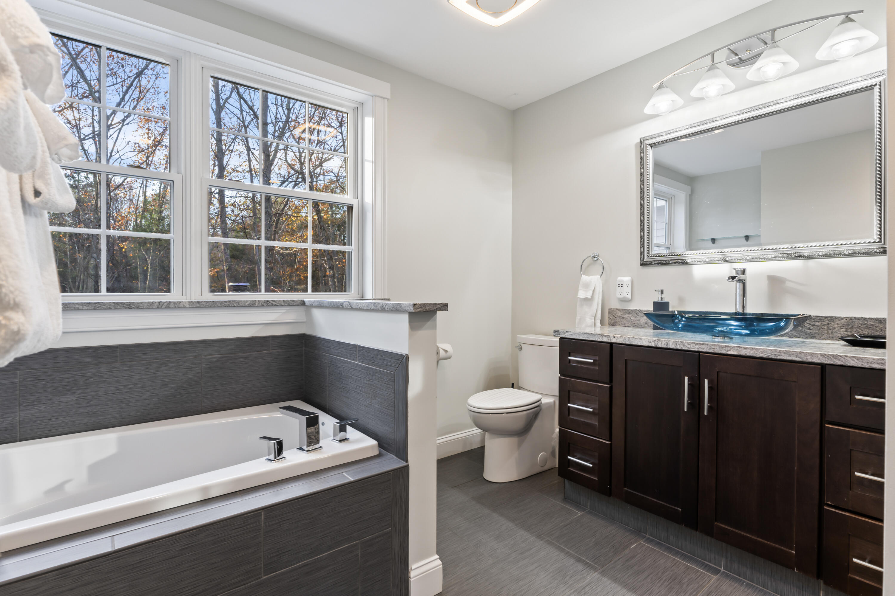 The upper level features a spacious primary suite complete with a walk-in closet and an elegant bath offering a soaking tub and waterfall-style shower. Additional highlights include radiant heated floors, mini-split cooling, a standby generator, first-floor laundry, and plentiful storage throughout.
