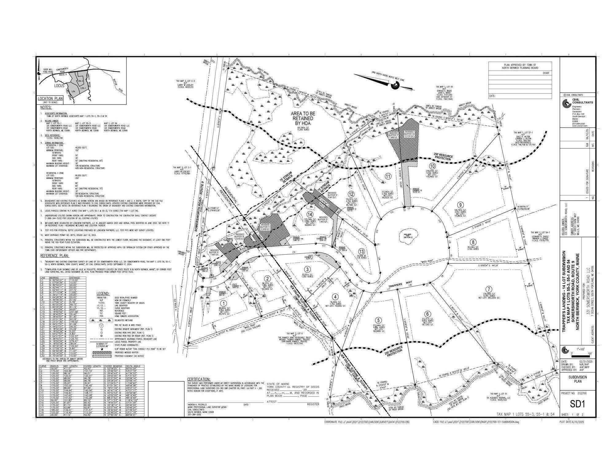 331 Somersworth Road in North Berwick offers a fully approved, 14-lot conventional subdivision ready for immediate development. The property spans 59.1 acres in the Residential I and II districts, with lot sizes ranging from 1.16 to 6.39 acres. The majority of lots are set back from the road, providing a private, natural setting for future homes.