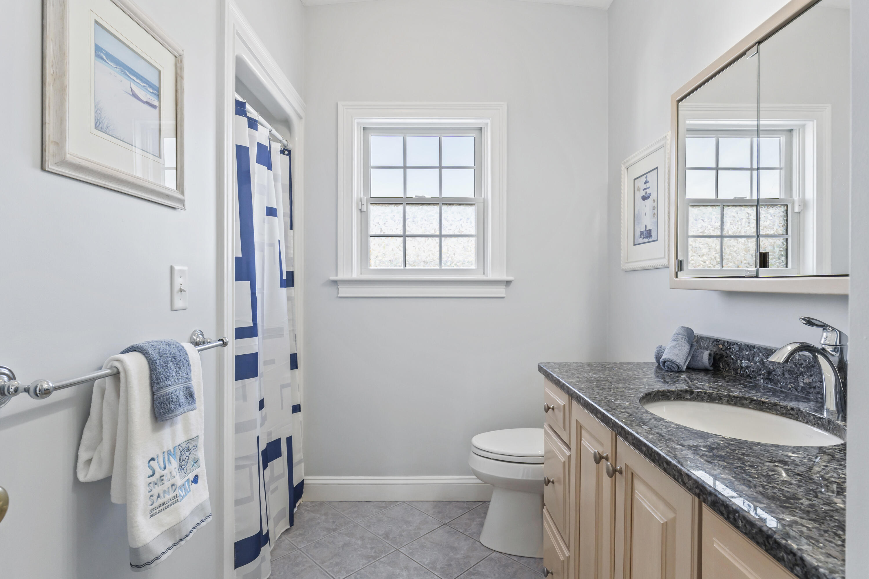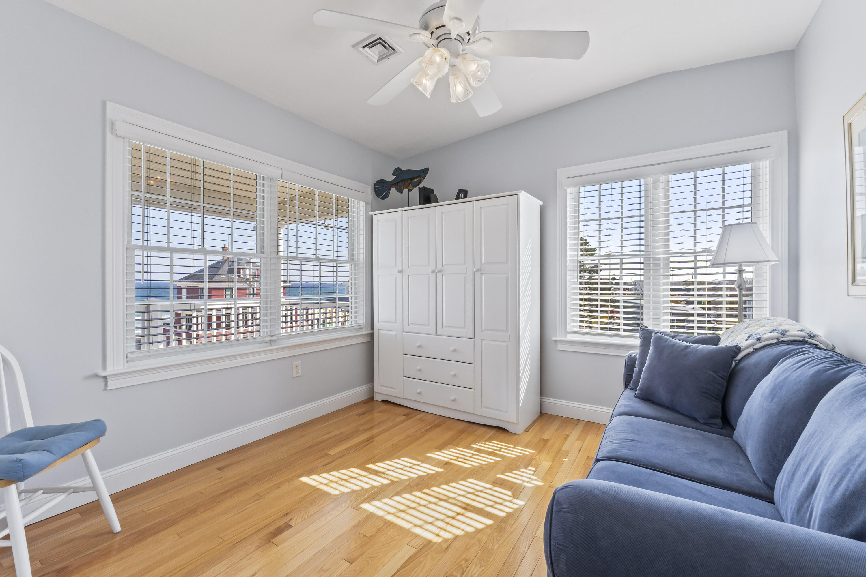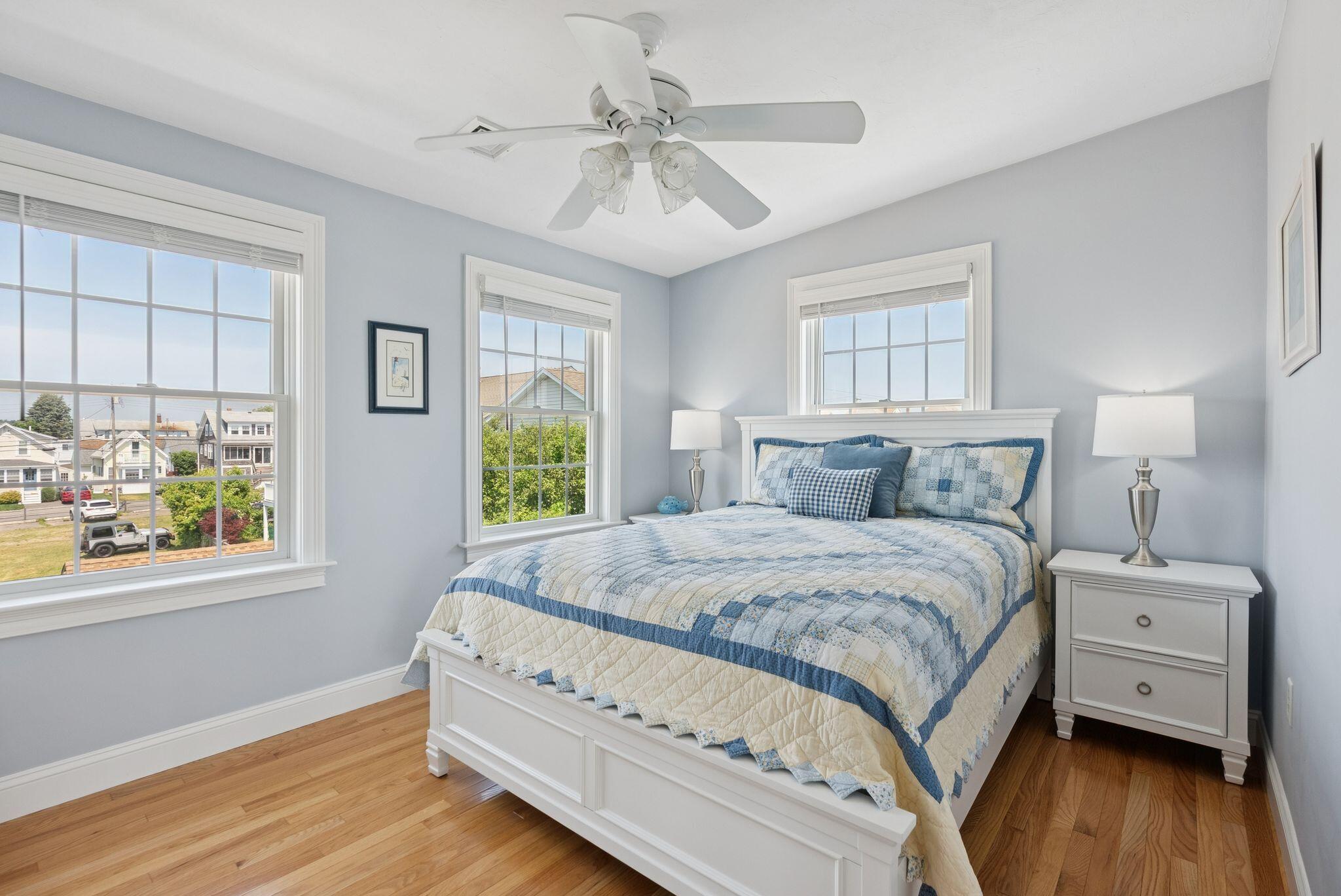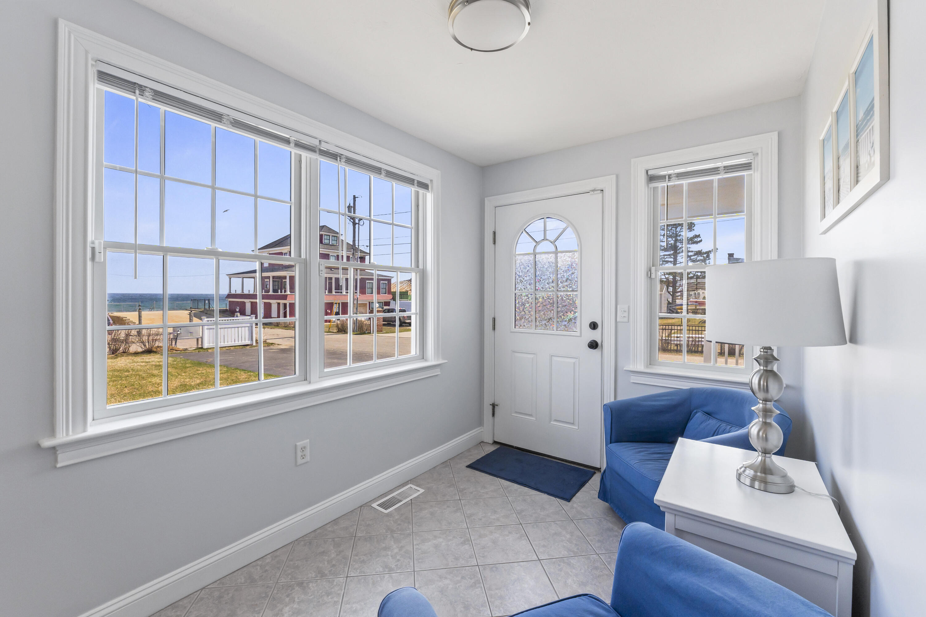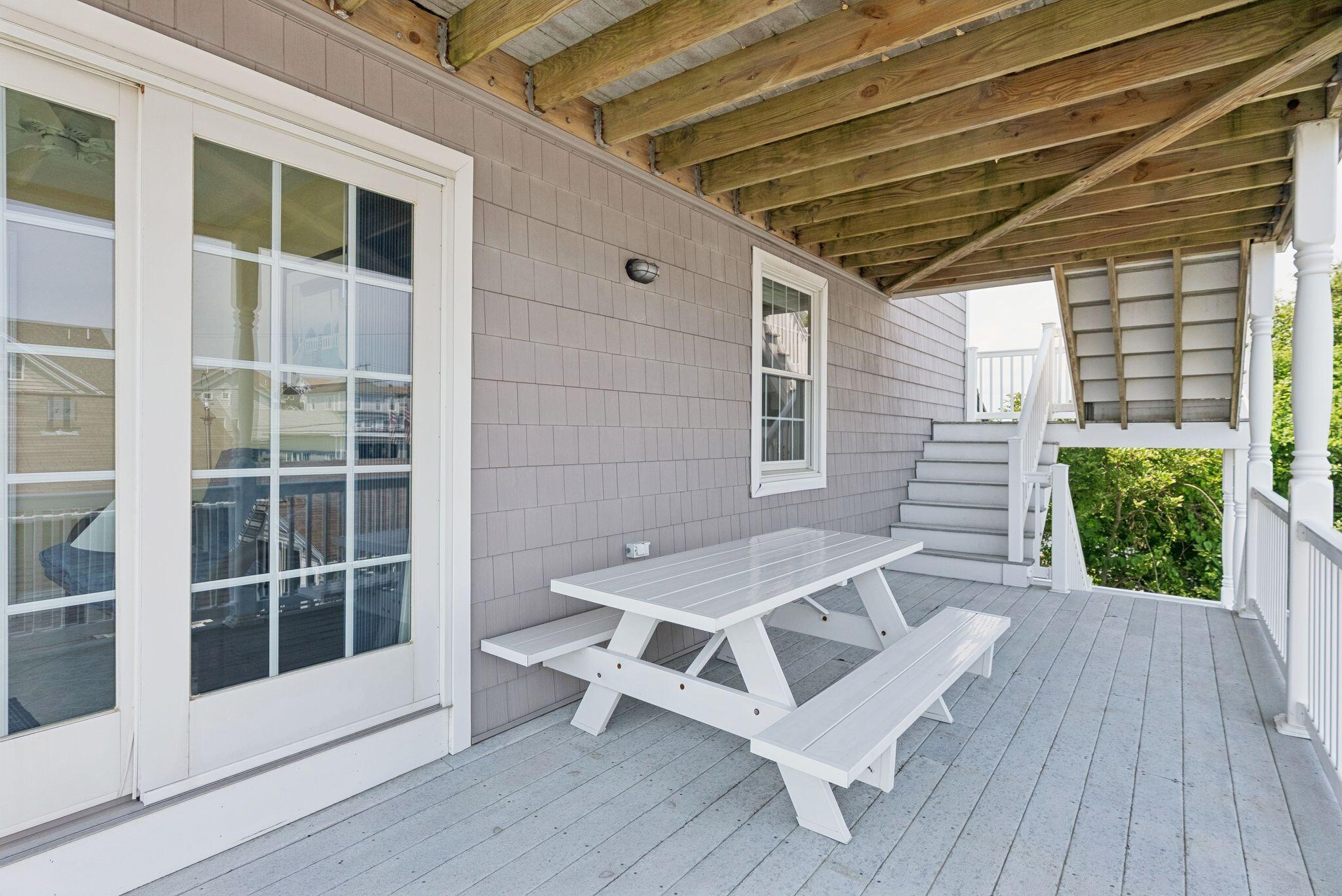 The main level offers a full kitchen, living and dining areas, a 4-season room, and four bedrooms including a primary suite. The upper and lower levels each include their own kitchenette, living space, bedrooms and baths, providing excellent flexibility and privacy. Ocean views, multiple decks, covered porch, hardwood and tile flooring, and abundant natural light through Andersen windows and sliders enhance the home's coastal appeal.