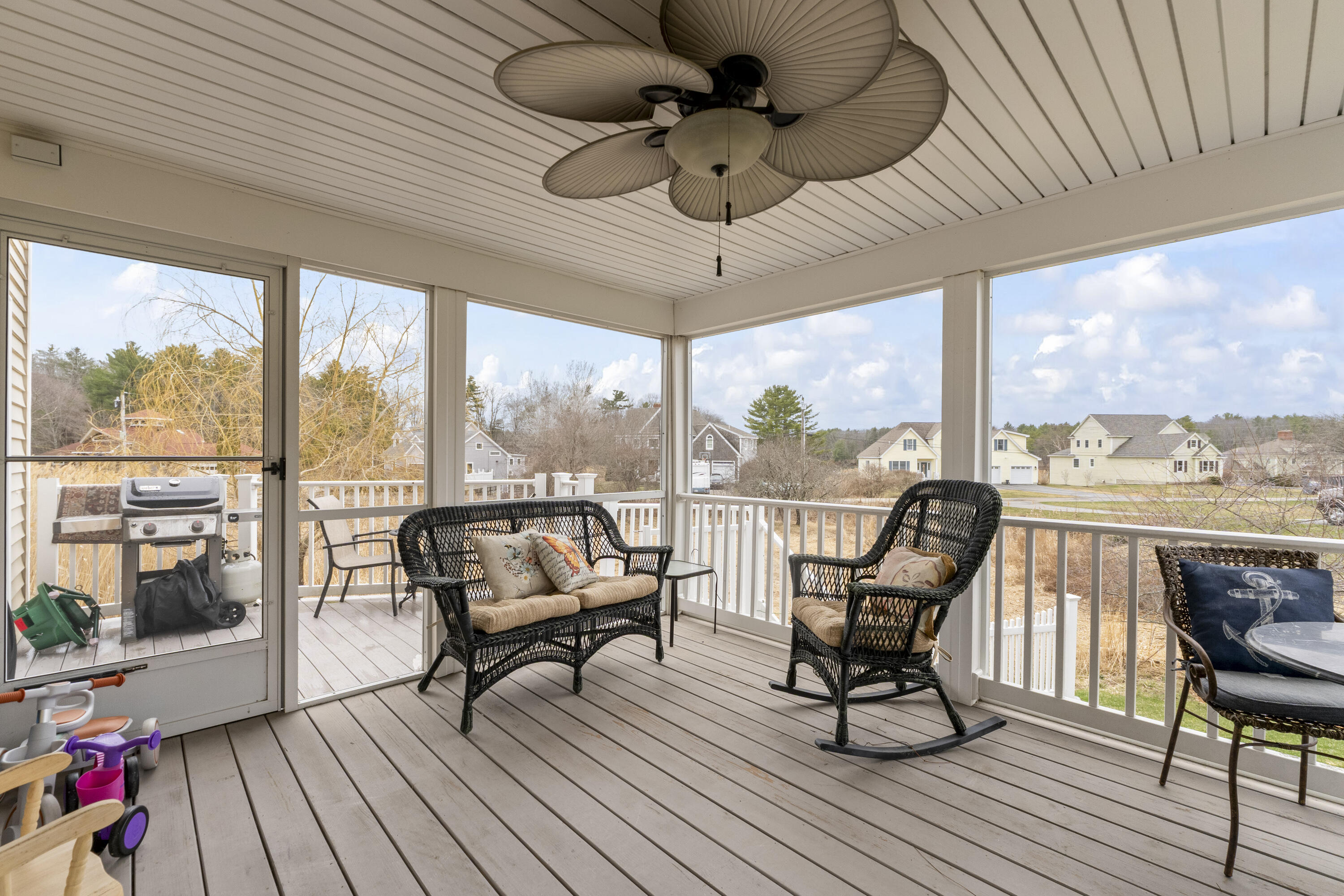 Refined coastal living with water views & private river access. Set at the end of a quiet cul-de-sac in the heart of York, this exceptional multigenerational residence offers an elevated lifestyle with sweeping water views and deeded access to the York River. Thoughtfully designed with both elegance and versatility in mind, the property seamlessly integrates a beautifully appointed primary home with a private accessory dwelling unit.The main residence features three bedrooms and two full baths, complemented by sun-filled living spaces, a well-appointed kitchen, and custom built-ins surrounding a gas fireplace. A generous composite deck extends the living area outdoors, ideal for entertaining or quiet relaxation. A versatile bonus room above the garage provides flexible space for a media room, office, fitness studio, or additional guest accommodations.The upper level presents a serene retreat, where two bedrooms including the primary suite capture stunning water views. The primary offers a full bath with walk-in shower and skylights, creating a light-filled sanctuary. An additional balcony invites you to enjoy elevated views and coastal breezes.The first-floor accessory dwelling unit is equally well-designed, featuring an open-concept kitchen, dining, and living area with a gas fireplace. The space includes a bedroom with en suite bath, a second bedroom or office, a half bath with laundry, and direct access to a screened porch and private deck--perfect for guests, extended family, or income potential. Set on over half an acre of beautifully landscaped grounds, the property also includes a full basement and two-car garage, providing ample storage. As part of the Orchard Farms community, residents enjoy access to a newly rebuilt shared dock with the opportunity for mooring, as well as easy launch access for small boats or swimming.Ideally located just minutes from beaches, schools, and local amenities.within convenient reach of Portsmouth, Portland and Boston.