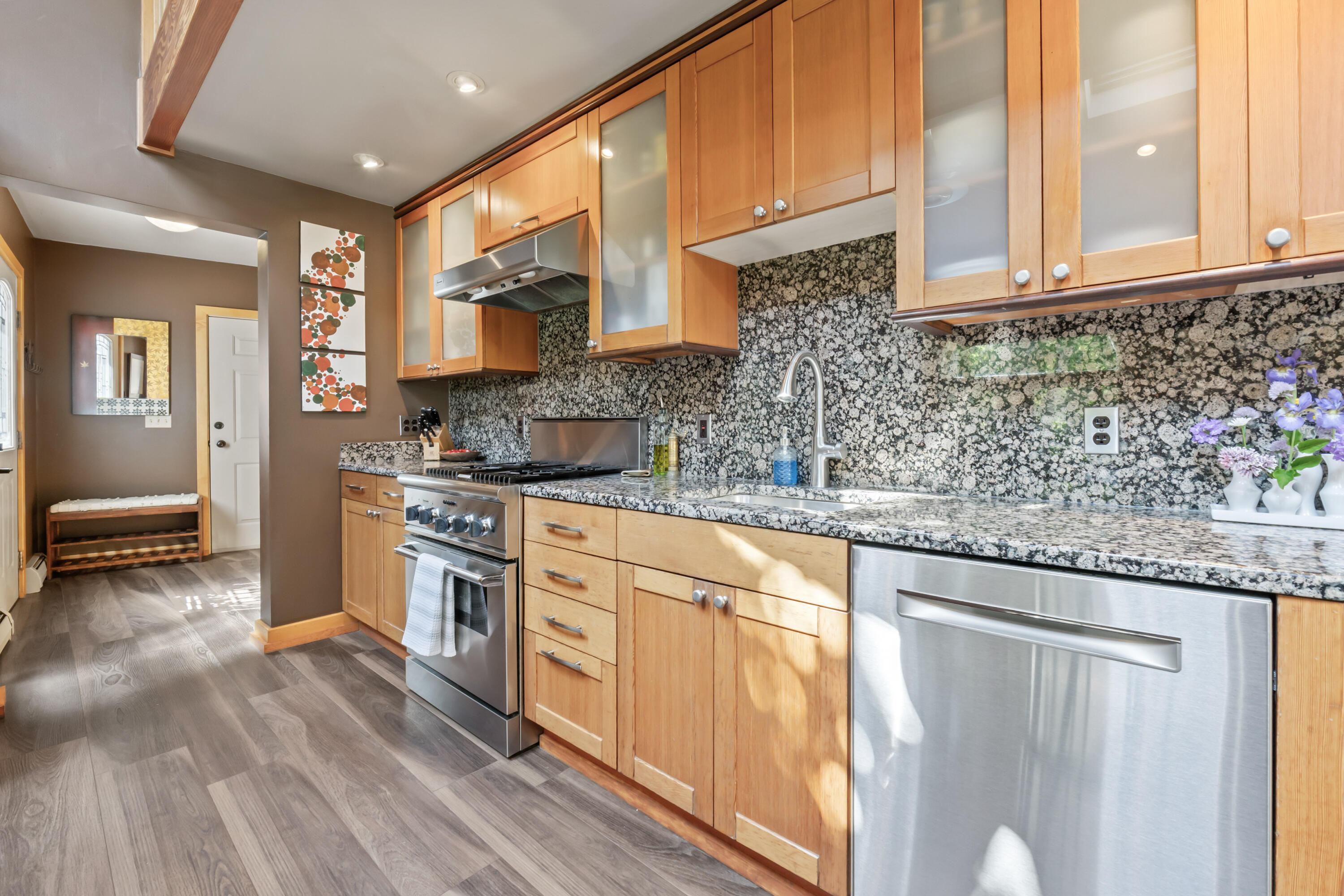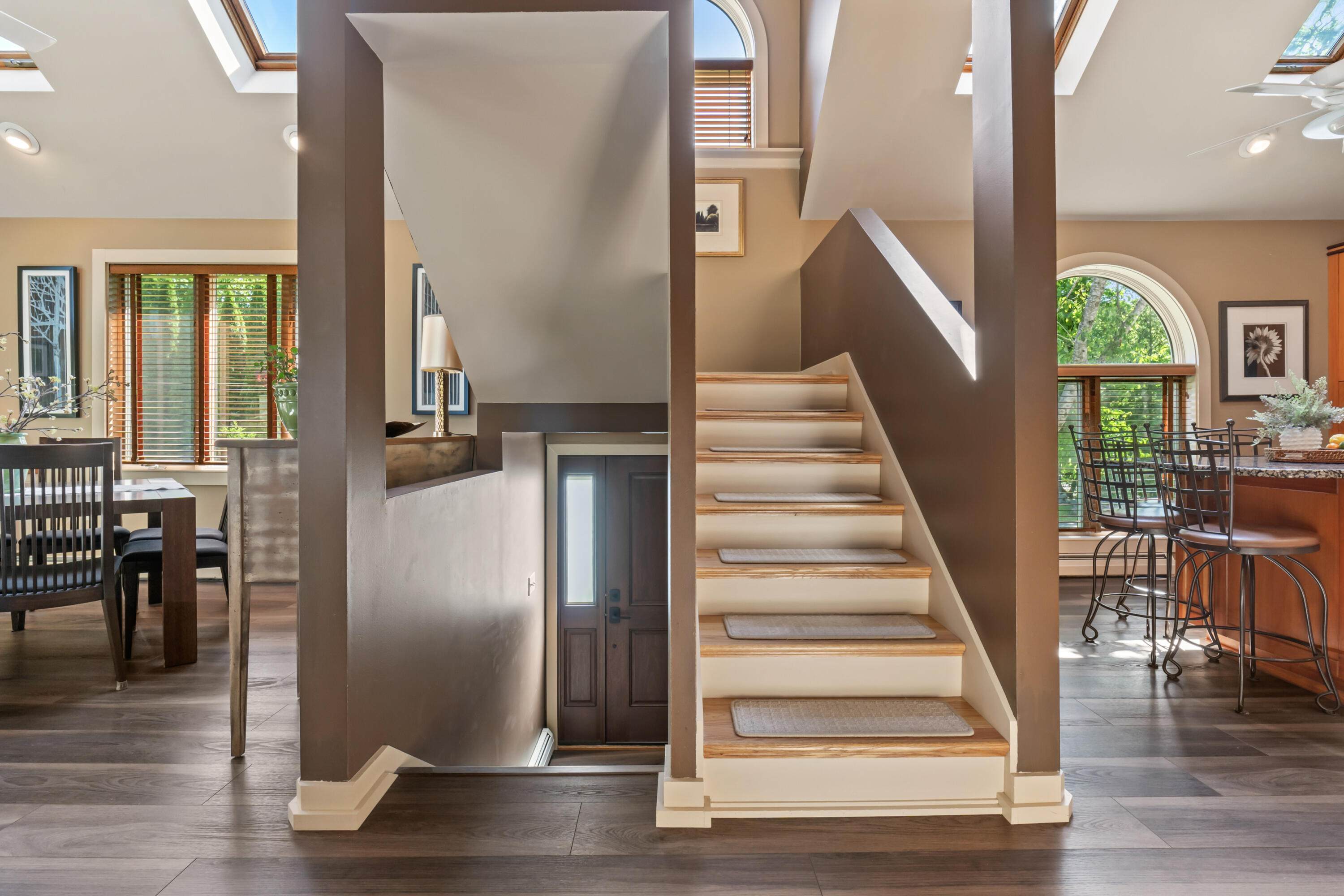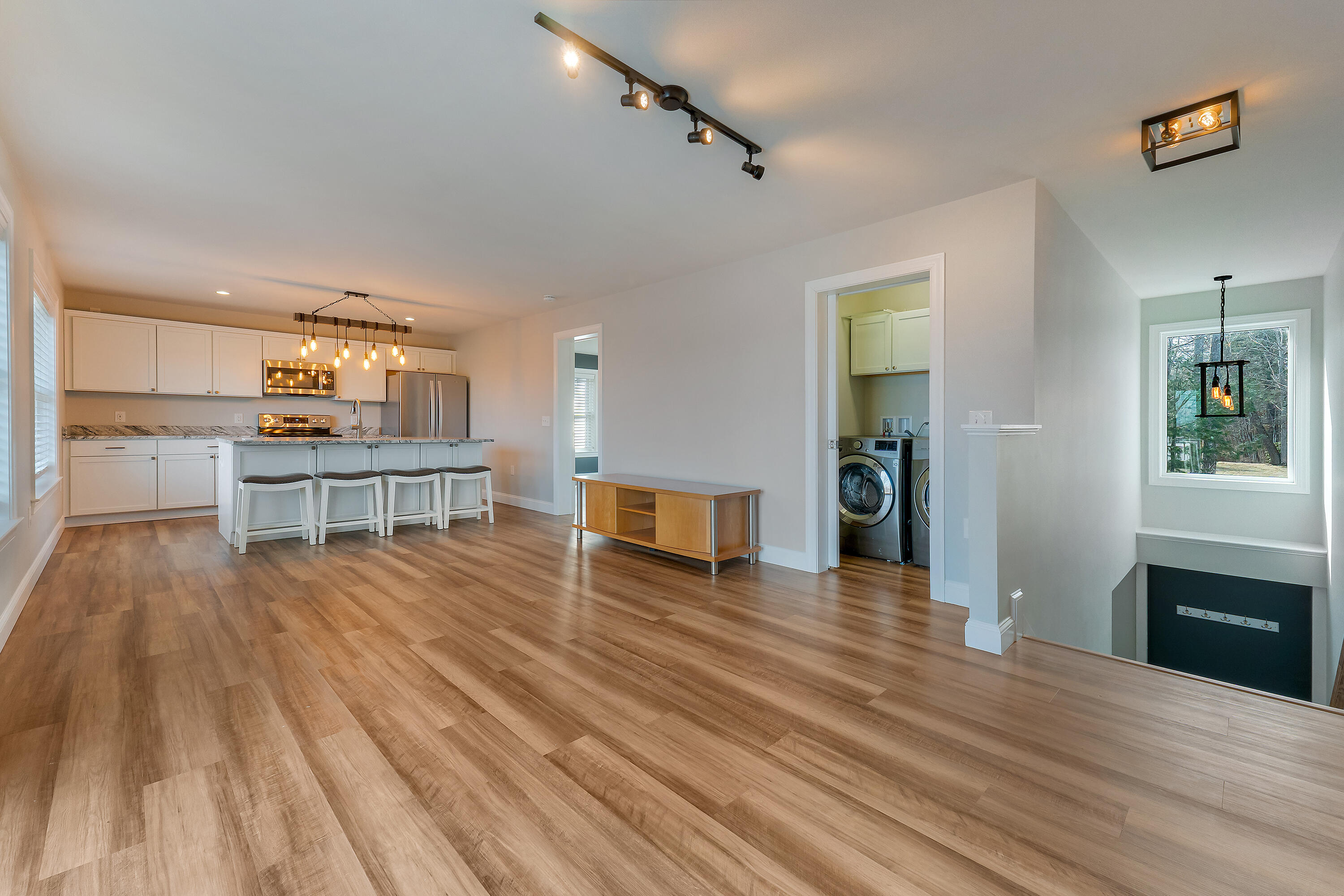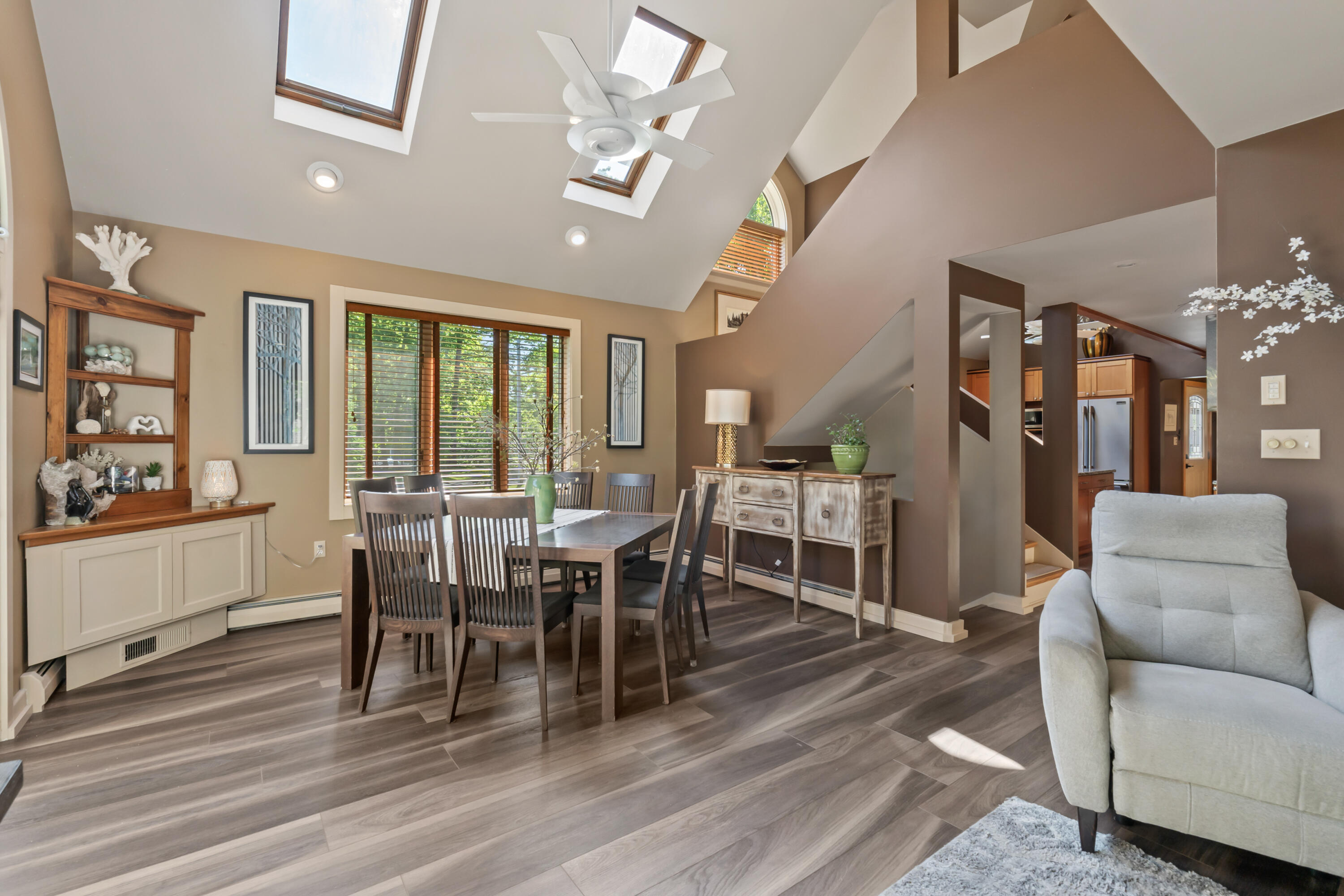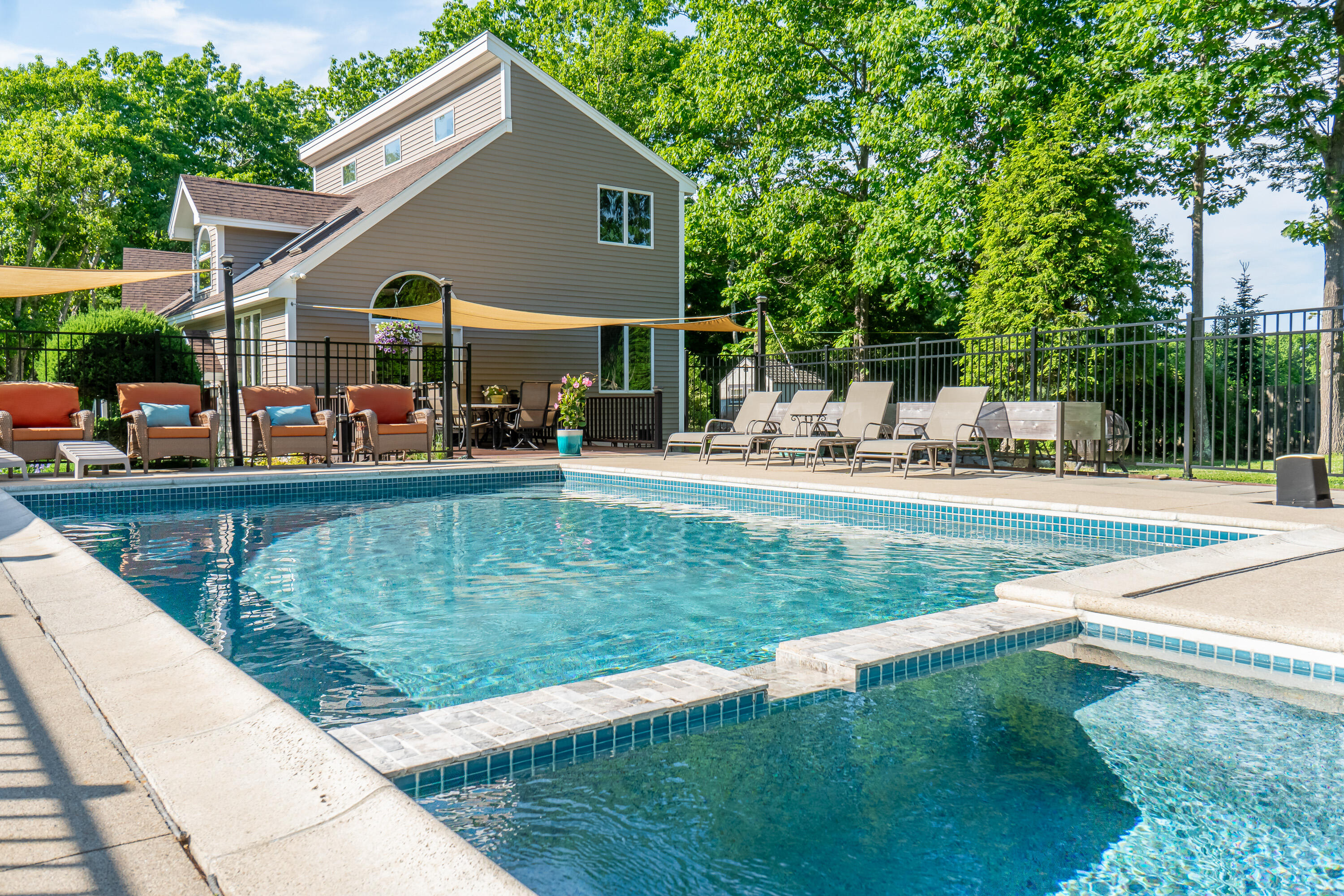 Investment opportunity! This one-of-a-kind property boasts 2 private homes which blends elegance, privacy, functionality, and outdoor living at its finest. Nestled on 1.4 acres at the end of a quiet road, this estate offers a unique lifestyle with a distant ocean view. The property comprises a stunning primary residence, a beautifully designed second dwelling, and an array of outdoor amenities, including a pool and garden sanctuary. The second dwelling also presents an opportunity for rental income or extended family living. As you step into the main house, an open-concept design welcomes you. Natural light streams through expansive windows and skylights, illuminating the spacious living area. The kitchen, outfitted with granite countertops, premium stainless steel appliances, and a generous island is ideal for casual meals or entertaining. Adjacent to the kitchen, the dining area is perfect for hosting both grand gatherings and intimate dinners. The first floor also includes a cozy bedroom, a convenient laundry room, and interior access to a three-bay garage. The second level is a private retreat featuring a luxurious primary suite with a cedar walk-in closet and a spa-like en-suite bathroom, complete with a soaking tub and glass-enclosed shower. Above the garage, a versatile space offers a bedroom, office, or bonus room, along with a full bath. The lower level boasts two additional bedrooms and an infrared sauna, creating a space for relaxation and comfort. The second dwelling, a standout feature, provides 1,302 square feet of thoughtfully designed living space. It includes one bedroom, 1.5 baths, a fully equipped kitchen, laundry facilities, a private garage bay, and a deck with ocean views. The Outdoor amenities elevate the property further. A heated in-ground pool with an attached hot tub anchors the beautifully landscaped grounds, a fire pit, and a built-in barbecue. All while just moments away from everything that Ogunquit has to offer